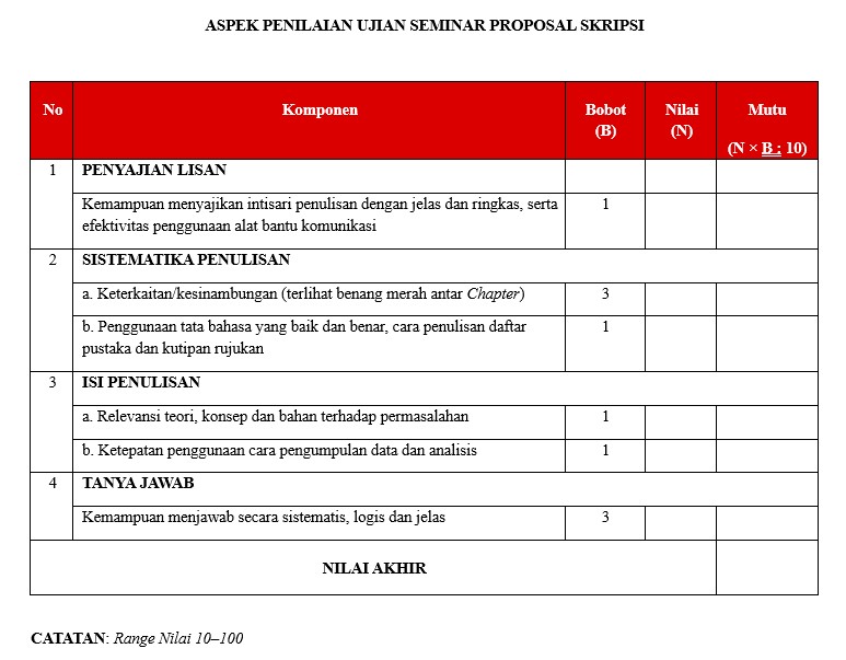 d. Mengumpulkan bukti pernah menjadi audience seminar proposal skripsi minimal 10 kali judul proposal penelitian